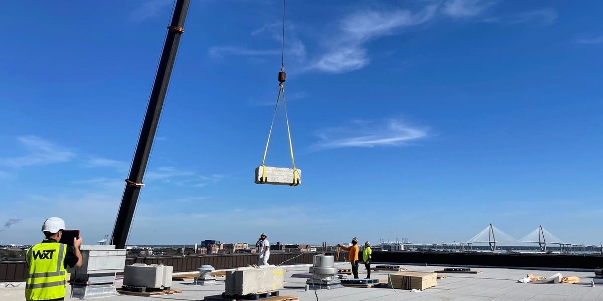 Our team is currently in the mobilization phase, preparing the roof for suspended scaffolding installation. Given that the existing roof lacks an integrated anchorage system, we’ve implemented an engineered solution using strategically positioned concrete barriers aligned with structural members to serve as secure tie-back points for our scaffolding system.