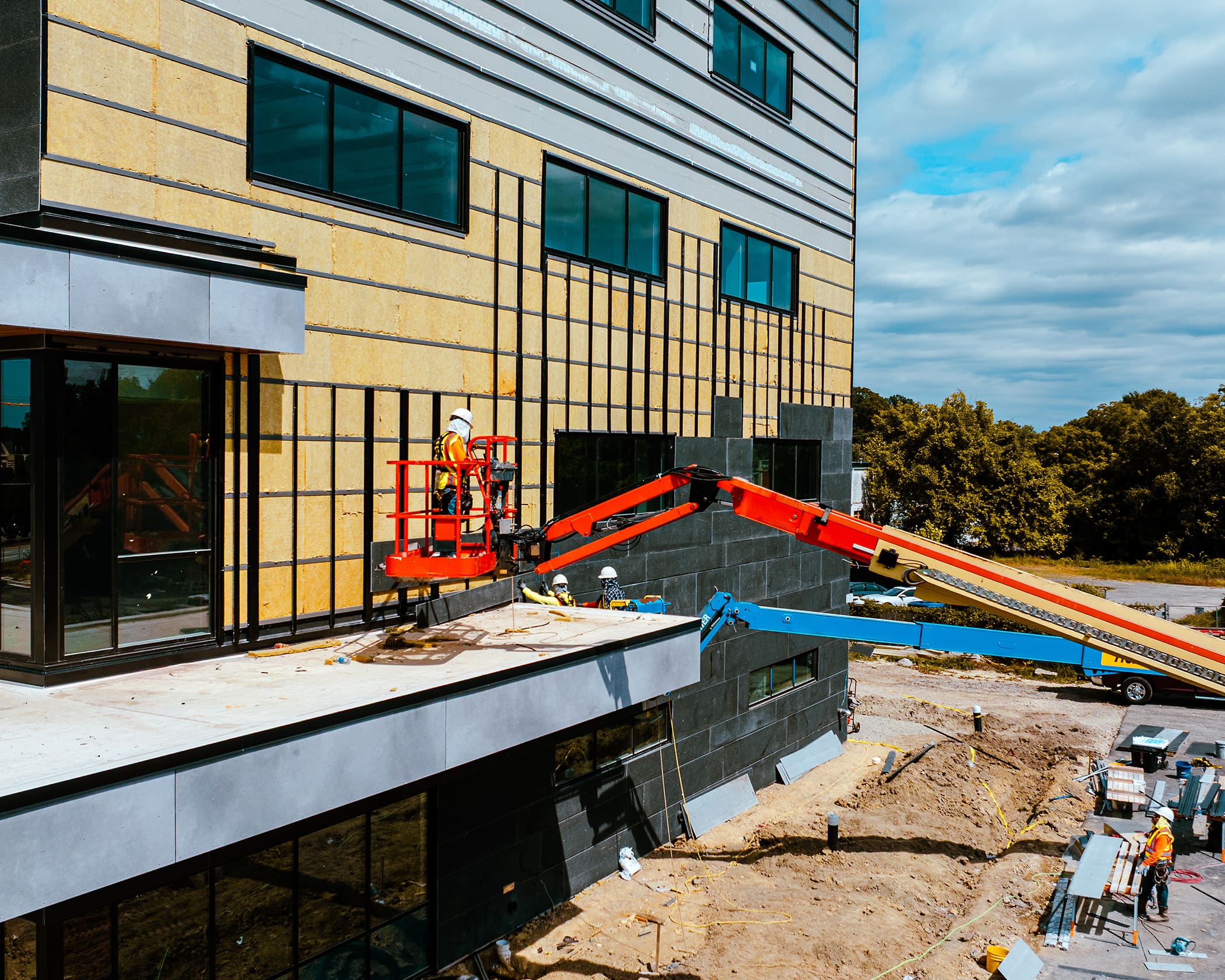 WxTite delivered exterior cladding and architectural metal solutions for this mixed-use development adjacent to the NC A&T campus in Greensboro, NC. Our scope encompassed comprehensive wall panel installation and flashing systems designed to enhance both the building’s aesthetic appeal and weather protection.